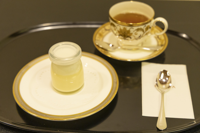 | 午後のおやつ | ■エクレア(ミルクキャラメル風味) ■冷たいベルガモット和紅茶 | ■百合根金団(きんとん) ■いちご大福 ■冷たいハーブティーのコンブチャ ■国産オレンジジュース ■温かいハンドドリップコーヒー |