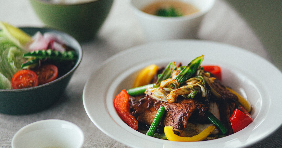 ■落合農園のキャベツと白ネギ 静岡県産いきいきポークの回鍋肉■掛川深蒸し茶 - 永瀬拓矢九段